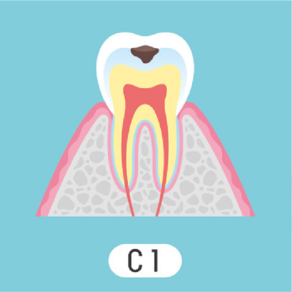 C1:歯の表面(エナメル質)の虫歯